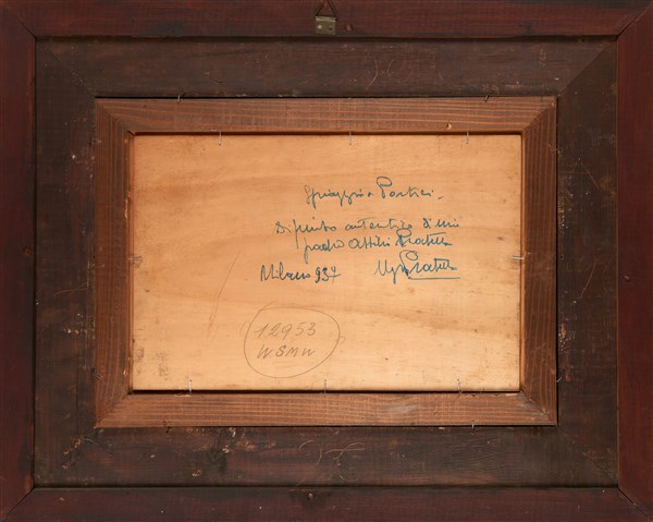 Al retro: iscrizione per autentica del figlio Ugo Pratella datata 1937