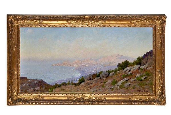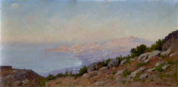 Mario Mirabella "Il Golfo di Palermo" olio su tela (cm 40x80) Firmato in basso
