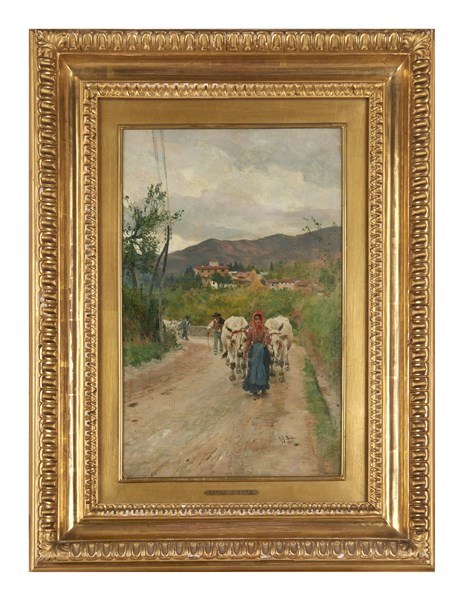 Raffaello Sorbi "Ritorno dai campi" 1910 olio su tela (cm 40x25,5) Firmato e dat