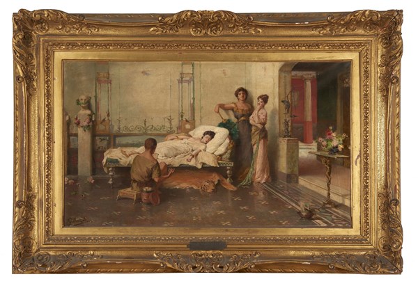Giovanni Muzzioli "Scena pompeiana" olio su tela (cm 43x71,5) Firmato in basso