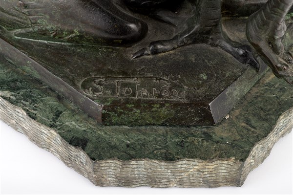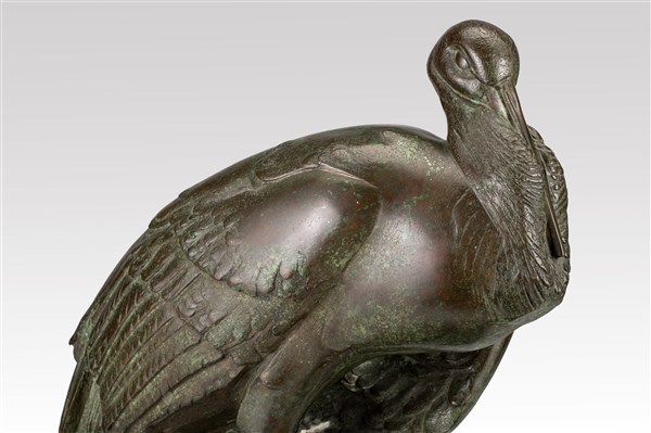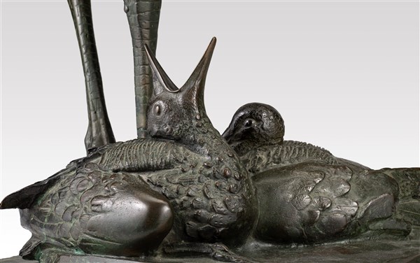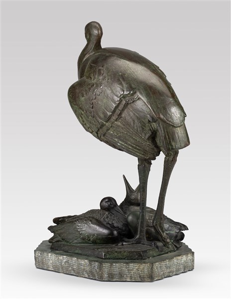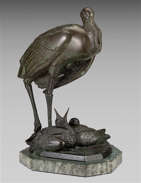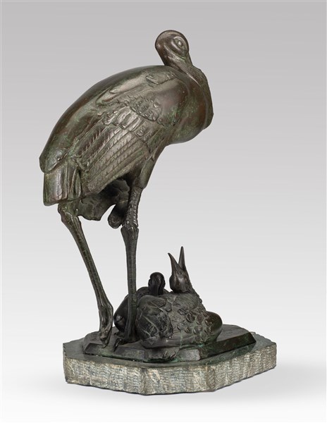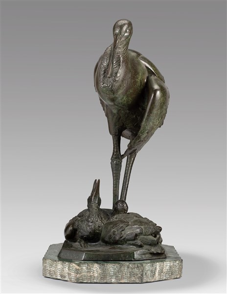 Sirio Tofanari "Cicogna con piccoli" bronzo su base in marmo (h cm 55) Firmata