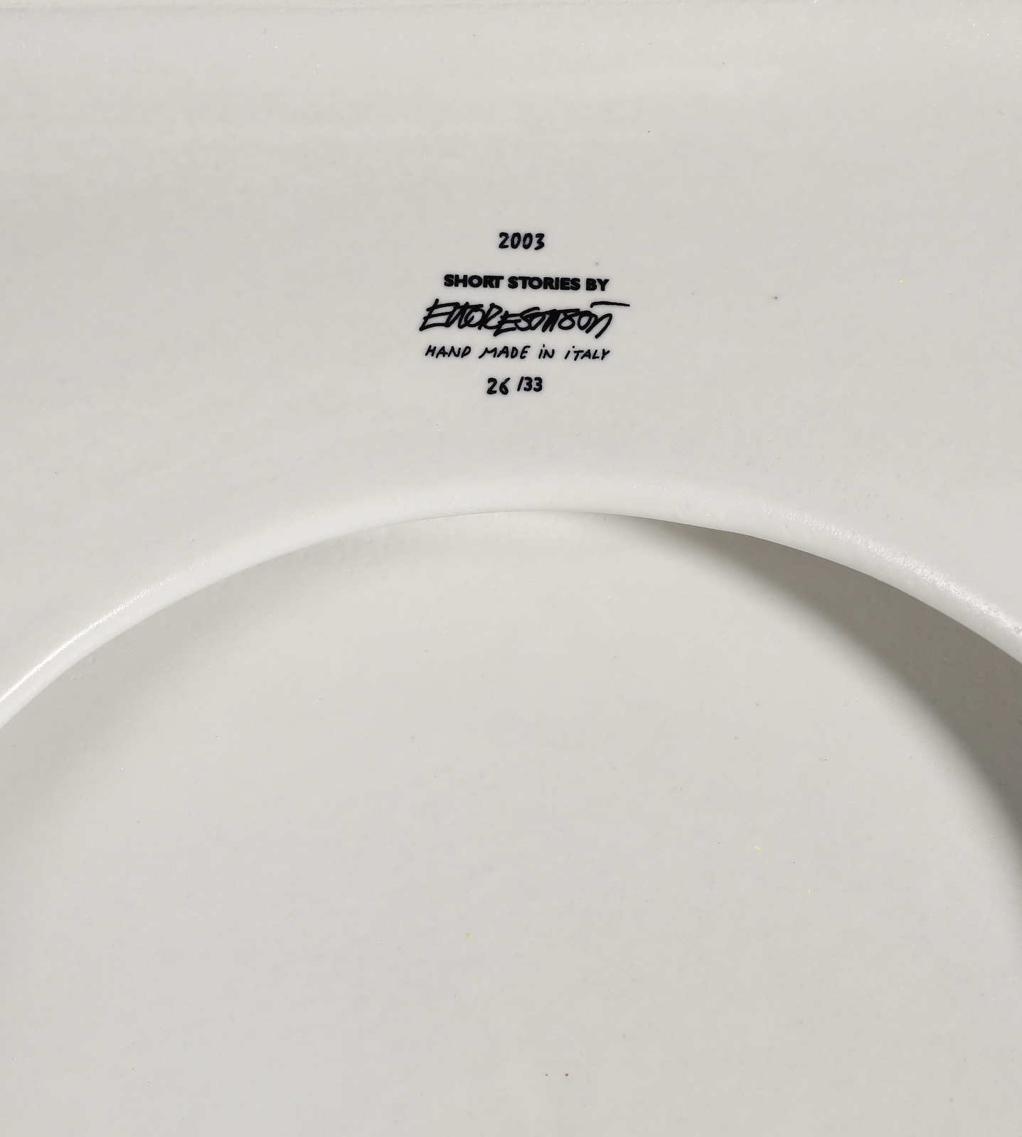 SOTTSASS ETTORE (1917 - 2007) Dalla serie Short Stories. Picchio. 2003. Ceramica. Cm 35,00 x 9,00 x 35,00. 26/33. Alla base 2003 SHORT STORIES BY Ettore Sottsass HAND MADE IN ITALY. Edizione totale: 33 esemplari + 3 prove d'artista di 14 oggetti in ceramica e vetro. Pubblicazione: S. Campitelli, A. Blessi, E. Sottsass, Racconti. Quattordici ceramiche e vetri di Ettore Sottsass, Livorno 2003; Milco Carboni, Sottsass: 700 Disegni, Skira editore, Milano, 2005. Lievi difetti.