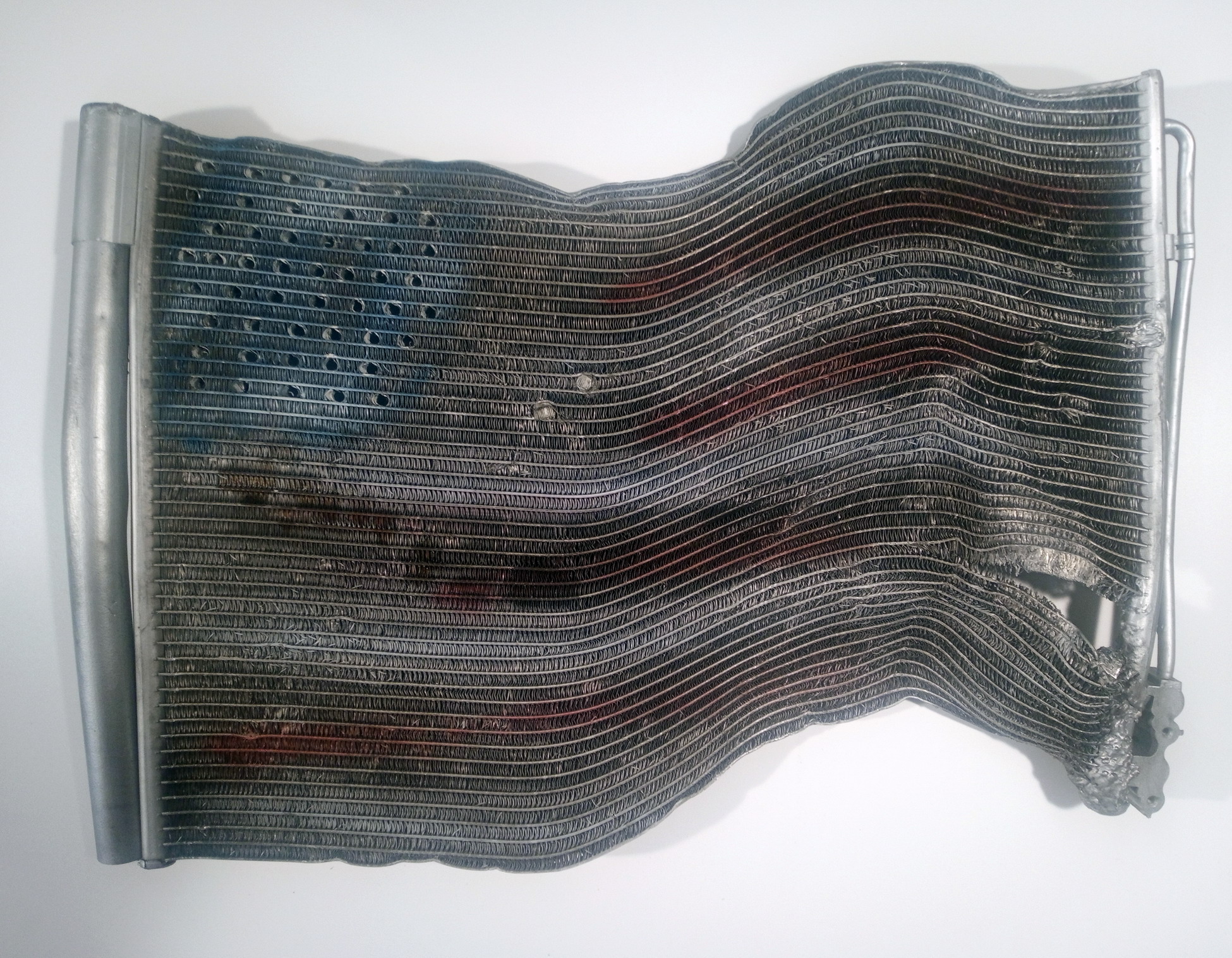 Opera realizzata di un vecchio radiatore, modellato e trasformato in bandiera con i colori dell'America.