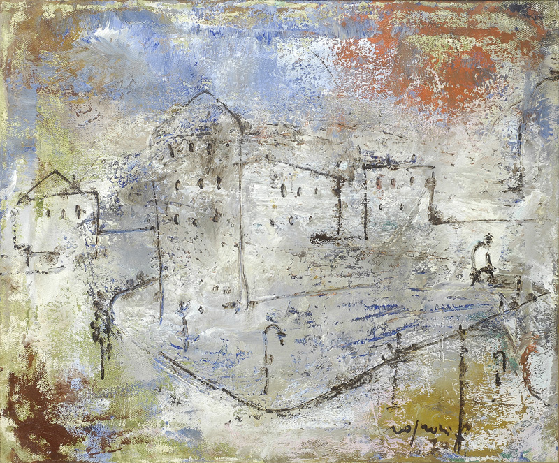 Franco Rognoni (Milano, 1913) PAESE GRIGIO, 1970 Olio su tela, cm. 46x55 Firma e data in basso a destra. Sul verso: firma e titolo; etichetta Galleria Annunciata, Milano.