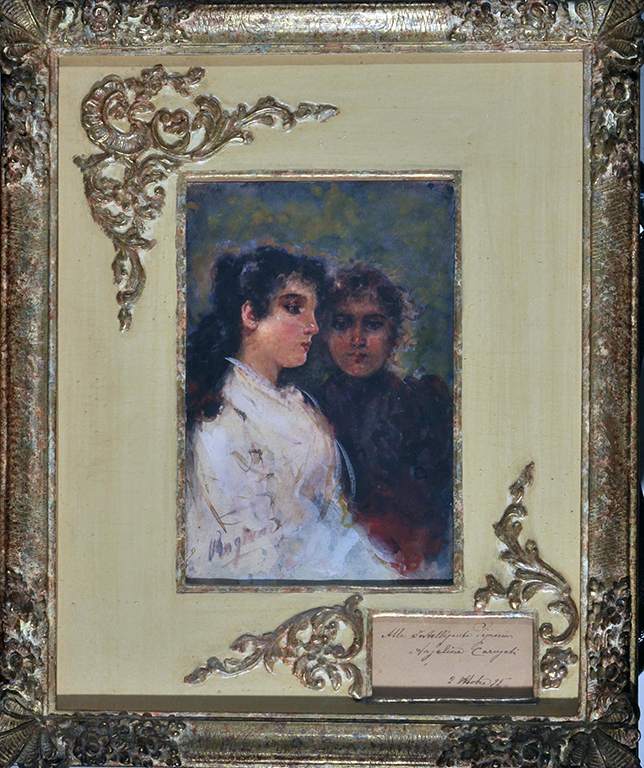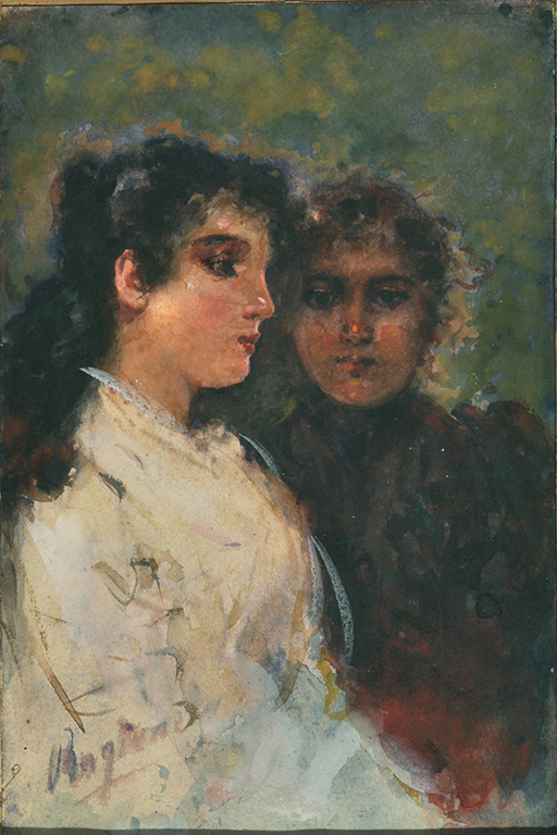 Raffaele Ragione (Napoli 1851 - 1919) Le amiche acquerello su carta cm 24x15.5 firmato in basso a sinistra: Ragione iscritto in basso a destra: Alla Intelligente Signorina Angelina Carugati 2 ottobre '95
