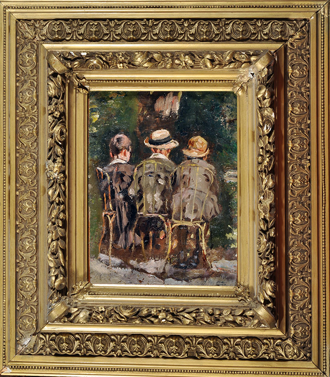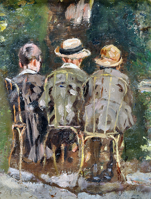 Ragione Raffaele (Napoli 1851 - 1925) I tre amici olio su tela rip. su cartone, cm 26x19,5 firmato in basso a destra: R. Ragione Provenienza: Gall. vittoria colonna, Napoli; Coll. privata,Napoli