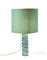 Rara lampada da tavolo con fusto a obelisco in vetro cristallo con decoro a "Ballottino multicolore" in fili intrecciati verde, zaffiro, ciclamino, zolfo, nero. Esecuzione Venini, Murano, 1954. Corrispondente al disegno di fornace n. 4294. (h vetro cm 24; h tot, cm 50) (lievi difetti)
