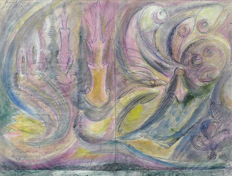Alberto Bragaglia (Frosinone, 1896 - Anzio, 1985) RACCORDO PARADOSSALE Tecnica mista, cm. 30x40 Firma in alto a destra e in basso a sinistra. Dipinto sul fronte e sul verso.
