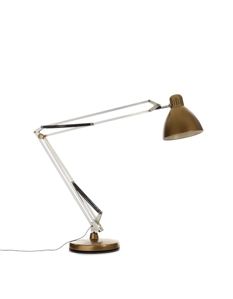 Pantograph frame made of welded and bolted square section profiled metal, harmonic steel springs, deep-drawn aluminum base and cap painted bronze. Cast iron, ABS and sand ballast.