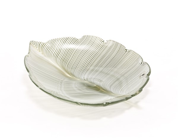 TYRA LUNDGREN Centrotavola a forma di foglia. Venini, Murano, 1980. Vetro soffia