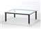 Tavolino da salotto della serie "T10 Fasce Cromate". Produzione Azucena, Milano, 1957. Struttura in metallo laccato nero, piedini cromati, piano in cristallo con perimetro in metallo cromato. (cm 120x44x101) (difetti)