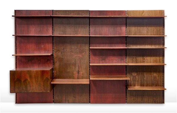 Lotto 902 | Marco Comolli Libreria a quattro campate con mobile bar e sedici ripiani. Produz