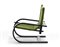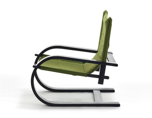 Poltrona modello "Scacciapensieri". Produzione Poltronova, Firenze, anni '70. Multistrato curvato verniciato nero e tessuto verde. (cm 90x87x77,5) (lievi difetti)