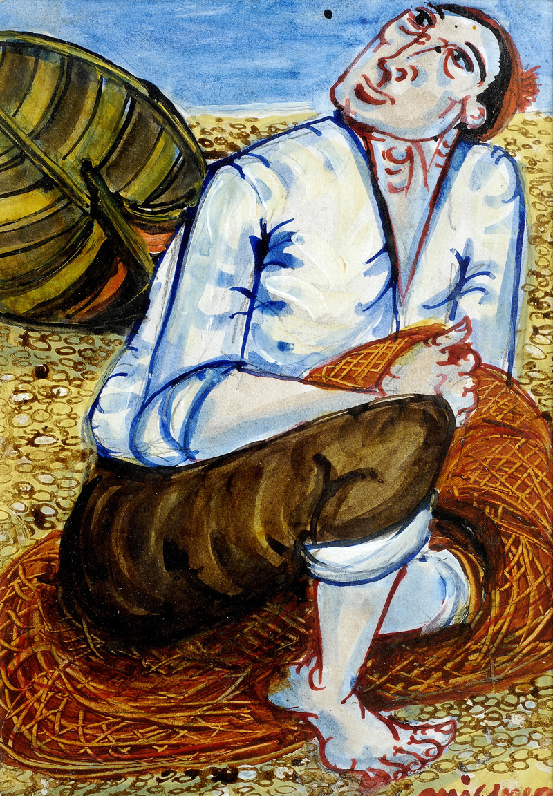 Giuseppe Migneco (Messina, 1908 - Milano, 1997) PESCATORE Tecnica mista su...