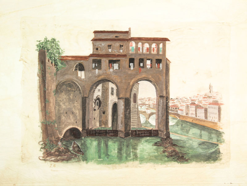 Fabio Borbottoni (1823-1901). Molino di San Niccolò. Acquerello policromo su carta velina. mm 420x550. Donzelli/Figna, 23. In basso a sinistra il numero «26». Ottima conservazione, in passe-partout.