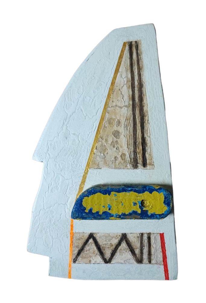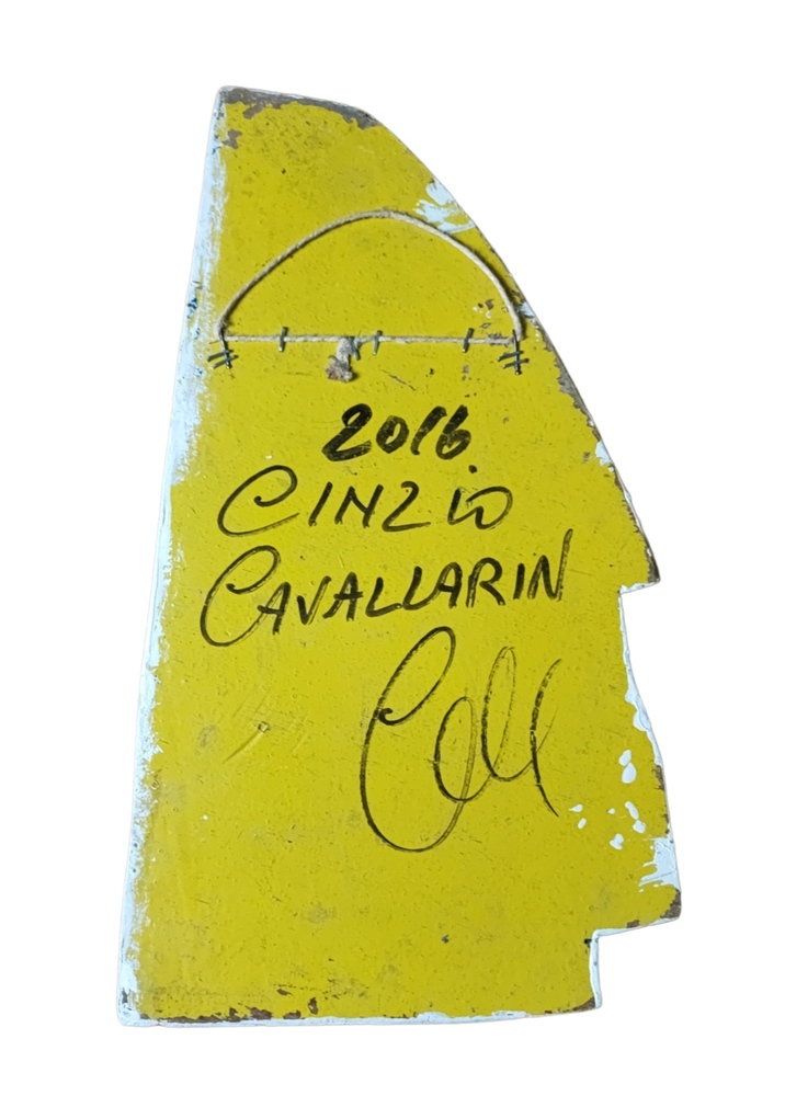 Scultura in legno dipinto 40x28x5 cm; firma e anno al retro.