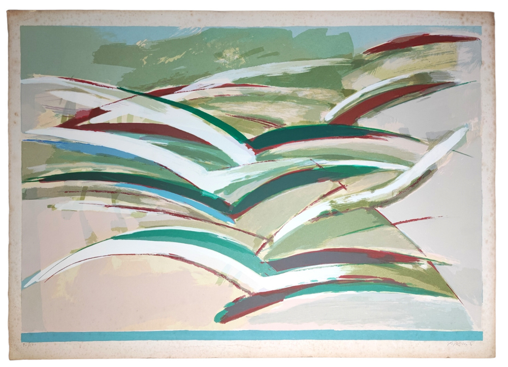 Litografia 51x71 cm, firma in basso a destra, tiratura 82/100 e timbro a secco di Multigraphic Venezia in basso a sinistra.