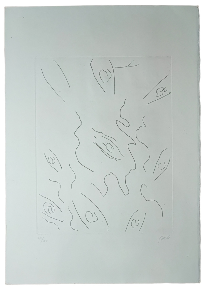Acquaforte 35x50 cm; firma in basso a destra, tiratura 49/100 a sinistra.