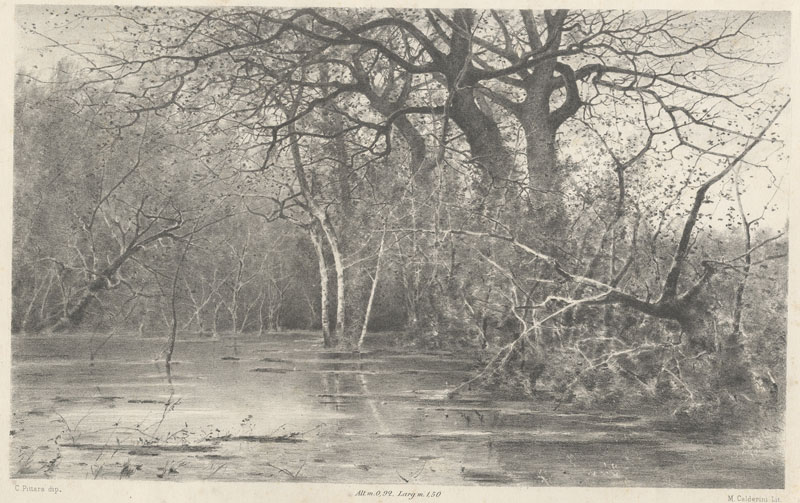 Carlo Casanova (1871-1950). Macchiette montanine. 1917. Acquaforte e puntasecca mm. 90x140. Foglio: mm. 255x350. PARATI, 170. Titolo e firma a matita in basso ai lati. Unito: Calderini Marco (Torino 1850-1941), Campagna romana (da Carlo Pittara). Litografia mm. 185x300. Foglio: mm. 310x430. In basso a caratteri tipografici "C. Pittara dip. - M. Calderini lit.". Sotto il titolo e "Torino Lit. F.lli Doyen". -