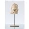 Elemento da fontana scolpito in pietra calcarea, su piedistallo in acciaio.