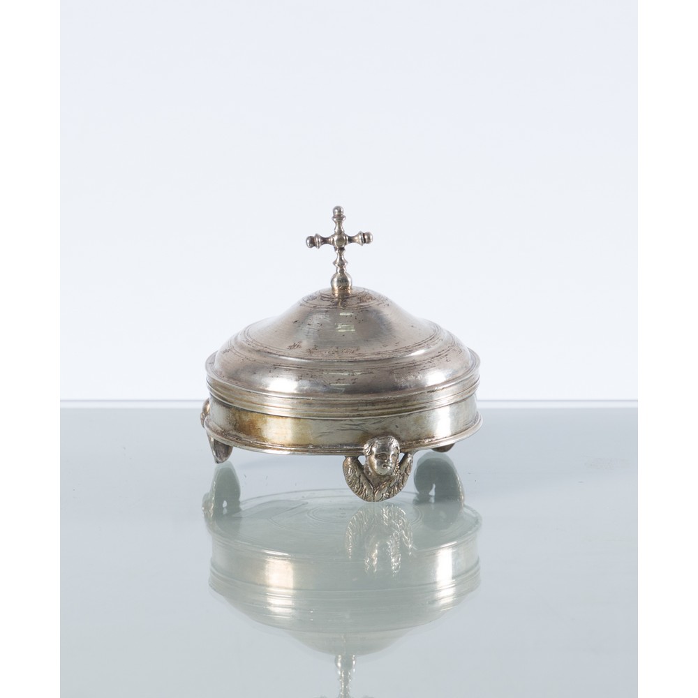 Porta ostie in argento, piedi sbalzati raffiguranti "Putti", console Francesco Mercurio.