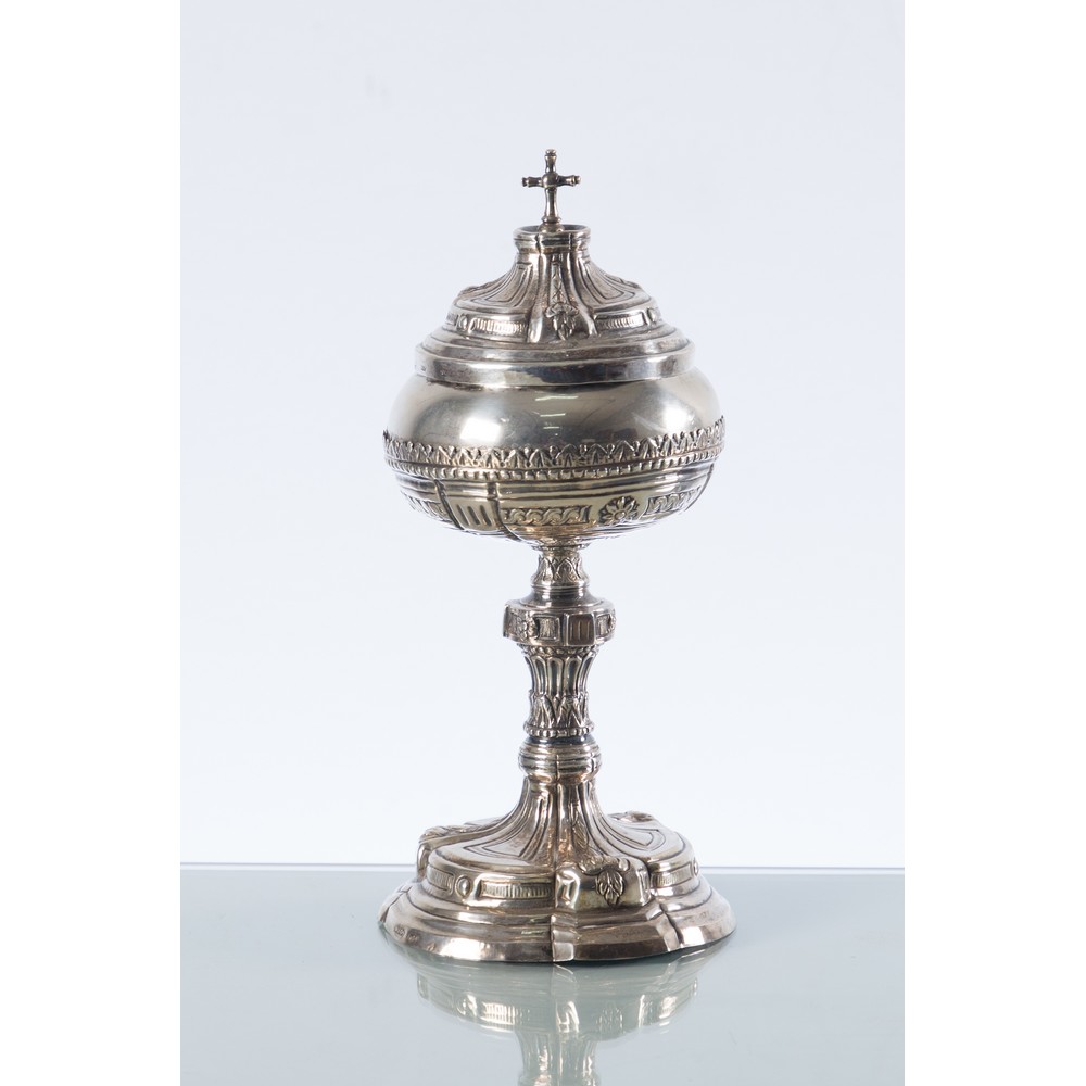 OFFICINE SICILIANE DEL XVIII SECOLO, Pisside in argento