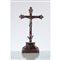 Crocifisso in argento con croce di ebano viola, con puntali in argento; base in legno di pioppo lastronato in ebano viola e perfilato in bosso