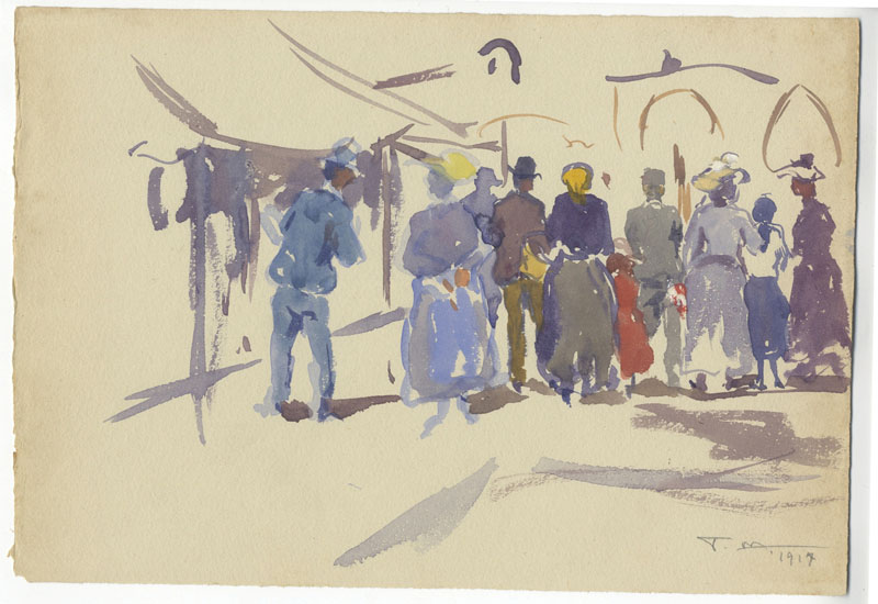 Pietro D'achiardi (1879-1940). Impressioni del Mercato. Siena. 1917....