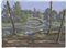 Pietro D'achiardi (1879-1940). Paesaggio fluviale con ponte. 1923. Gouache e tracce di matita di grafite su cartoncino verde. mm 240x325. Firmata e datata a matita in basso a destra. Ottima conservazione.
