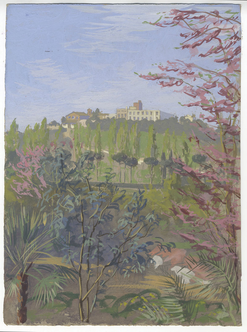 Pietro D'achiardi (1879-1940). Veduta di paese. 1926. Gouache su carta avana....