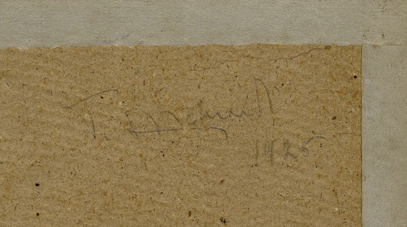 Pietro D'achiardi (1879-1940). Veduta di paese. 1926. Gouache su carta avana. mm 335x250. Firmata e datata a matita sul cartone di supporto. Ottima conservazione.