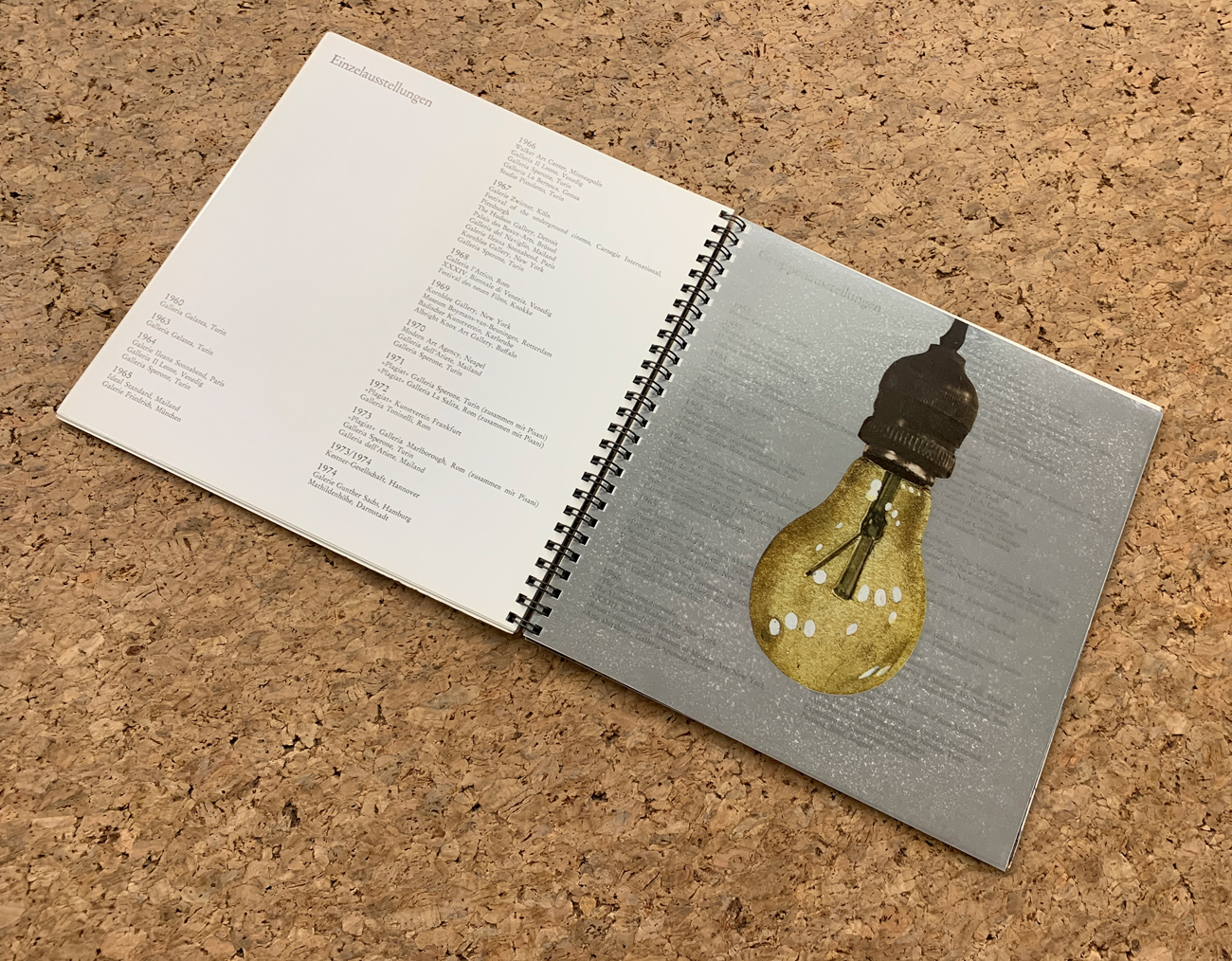 Pregevole edizione, con rilegatura ad anelli, realizzata in occasione dell'esposizione tenutasi presso Istituto Mathildenhohe, Darmstadt, dal 27/04/1974 al 26/05/1974, per la collana 'Meister der italienischen Moderne'