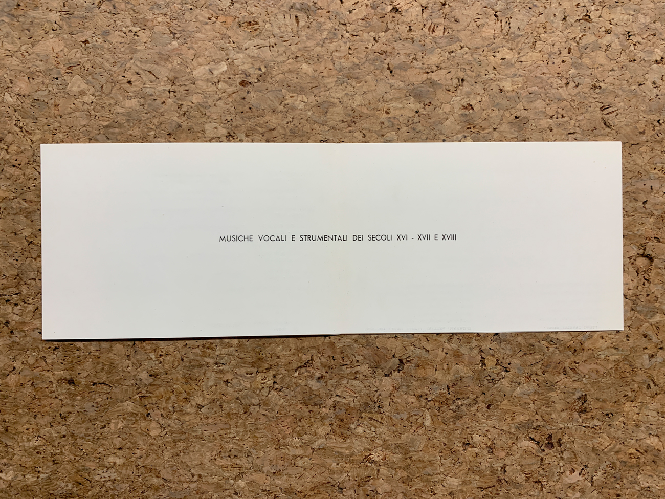 Pieghevole illustrato con riproduzioni di composizioni di Bruno Munari edito come invito per una serata musicale con 'Musiche vocali e strumentali dei secoli XVI - XVII e XVIII
