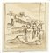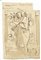 Fortunato Duranti (1787-1863). Tre fogli con 4 Studi riquadrati con figure e una Santa in preghiera. 1830-40 ca. Penna e inchiostro acquerellato; carta bianca a vergelle e filigranata. (1) mm 113x300ca. (2) mm 165x110. Foglio 3: mm. 133x127. Si tratta di schizzi omogenei per lo stile, impetuoso e senza pentimenti, e per la carta. Facevano forse parte di un unico taccuino e anche questi appartengono alla fase "quadrata" dell'attività dell'artista. Sul bordo in alto del foglio 2 l'iscrizione manoscritta a penna e inchiostro, di mano dello stesso artista: "Mancini Romolo e[...]/Remolo". I fogli, a parte un velo di sporcizia agli angoli, alcuni spellamenti della carta (1) e uno strappo all'angolo destro in alto del (2), sono in buone condizioni.