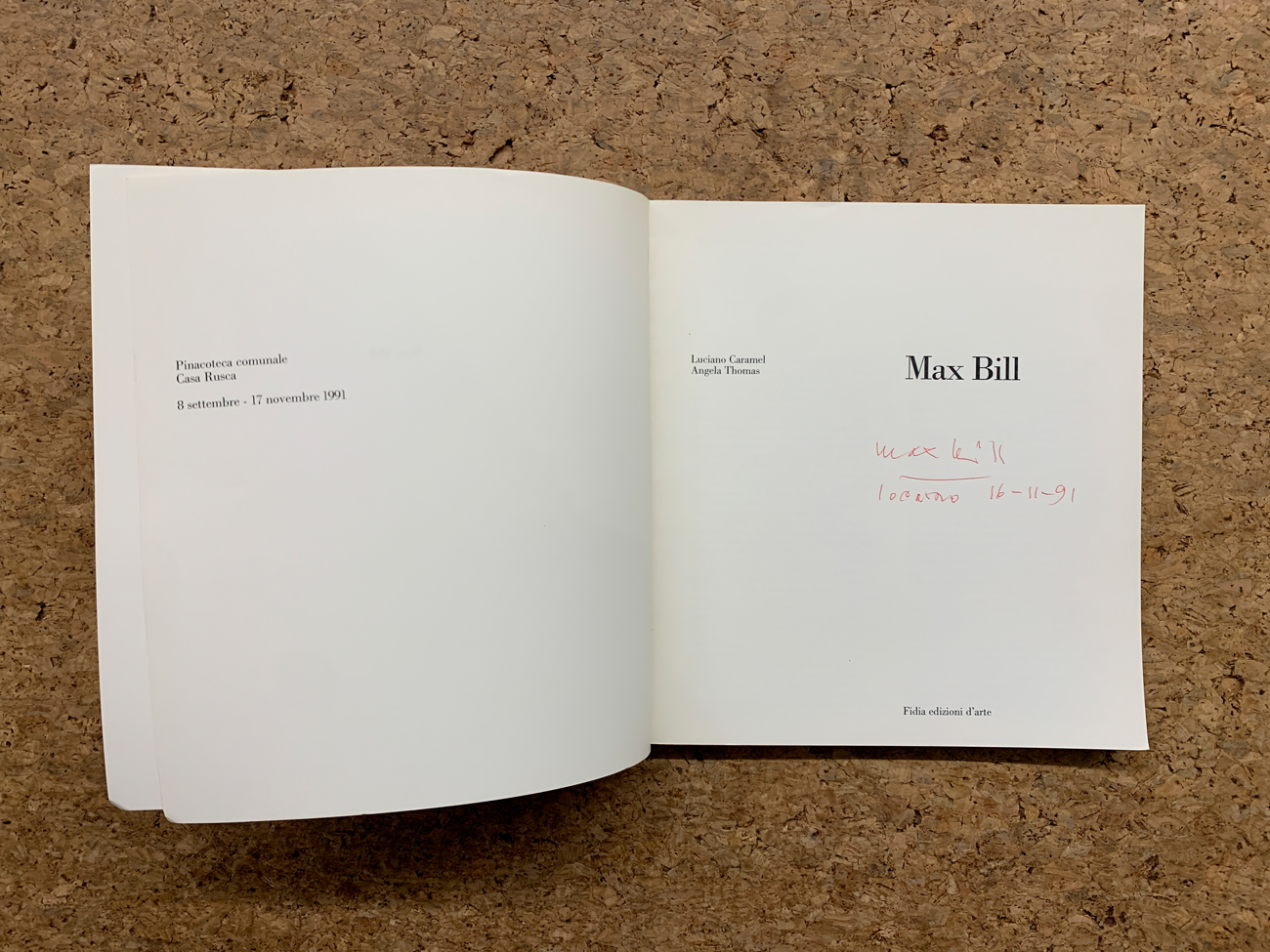 Reca firma a biro rossa dell'Artista all'interno (Locarno, 16/11/1991)
