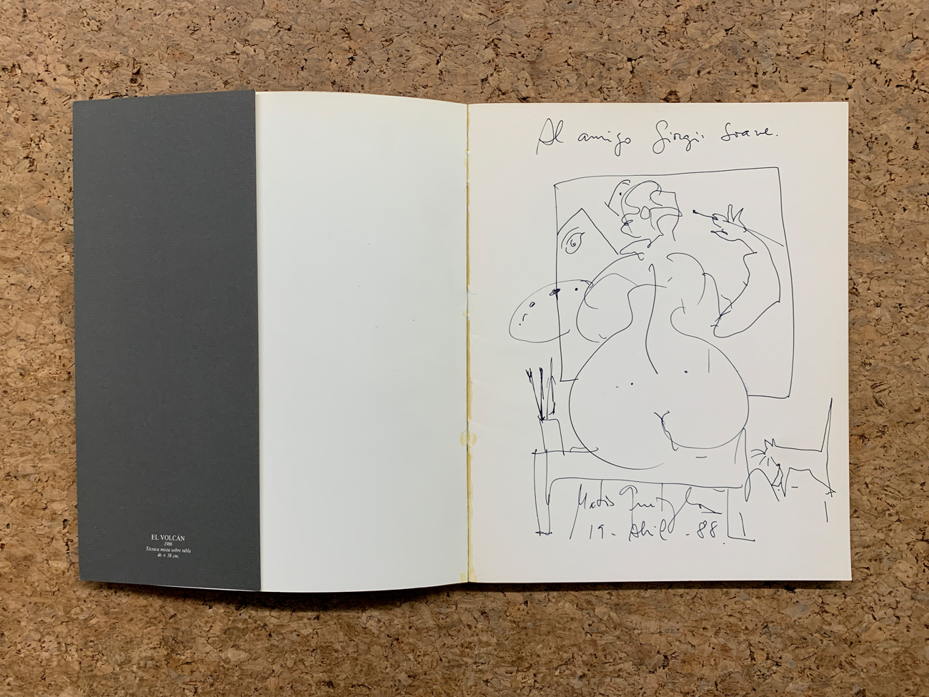 Reca disegno dell'Artista firmato, datato e dedicato a Giorgio Soavi all'interno