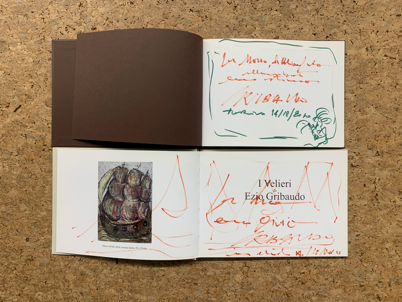 CATALOGHI CON DISEGNO (EZIO GRIBAUDO) - Lotto unico di 2 cataloghi con dedica e disegno