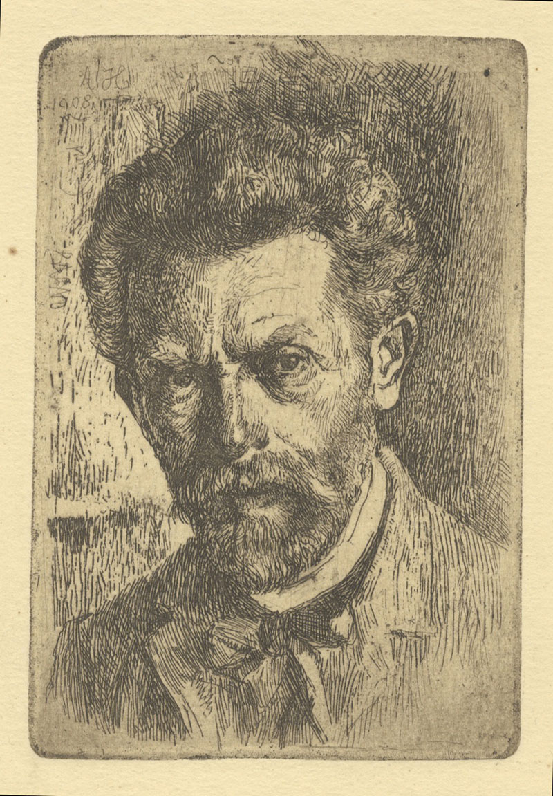 Alfonso Holländer (1845-1923). Autoritratto. 1908. Acquaforte. mm 107x73....