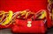 Lotto 5 | Roberta di Camerino, Borsa a mano in tessuto rosso e dettagli in pelle
