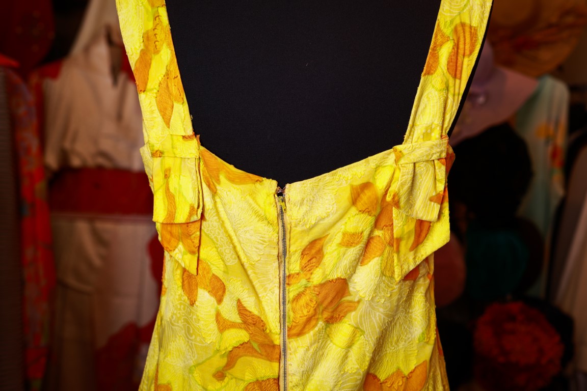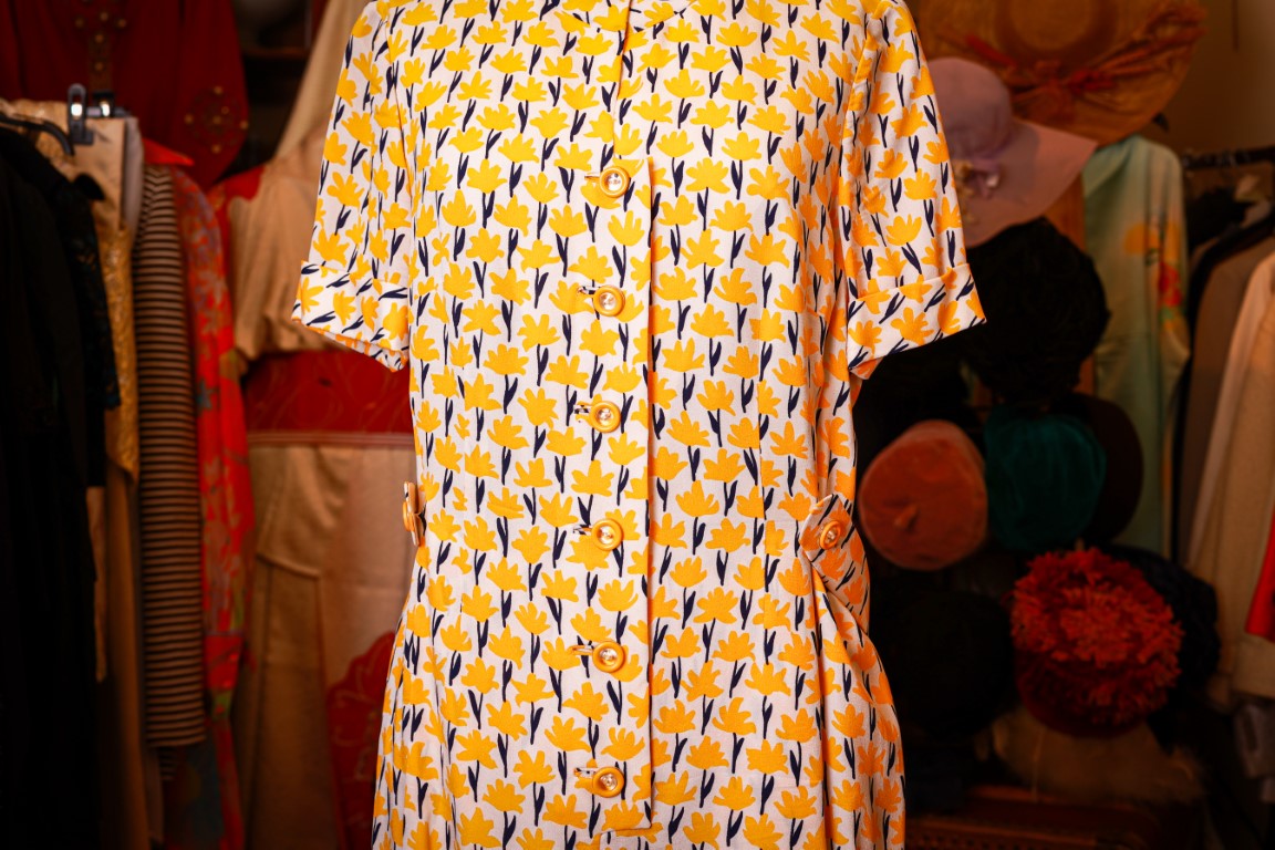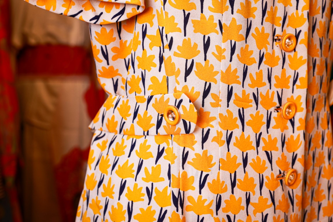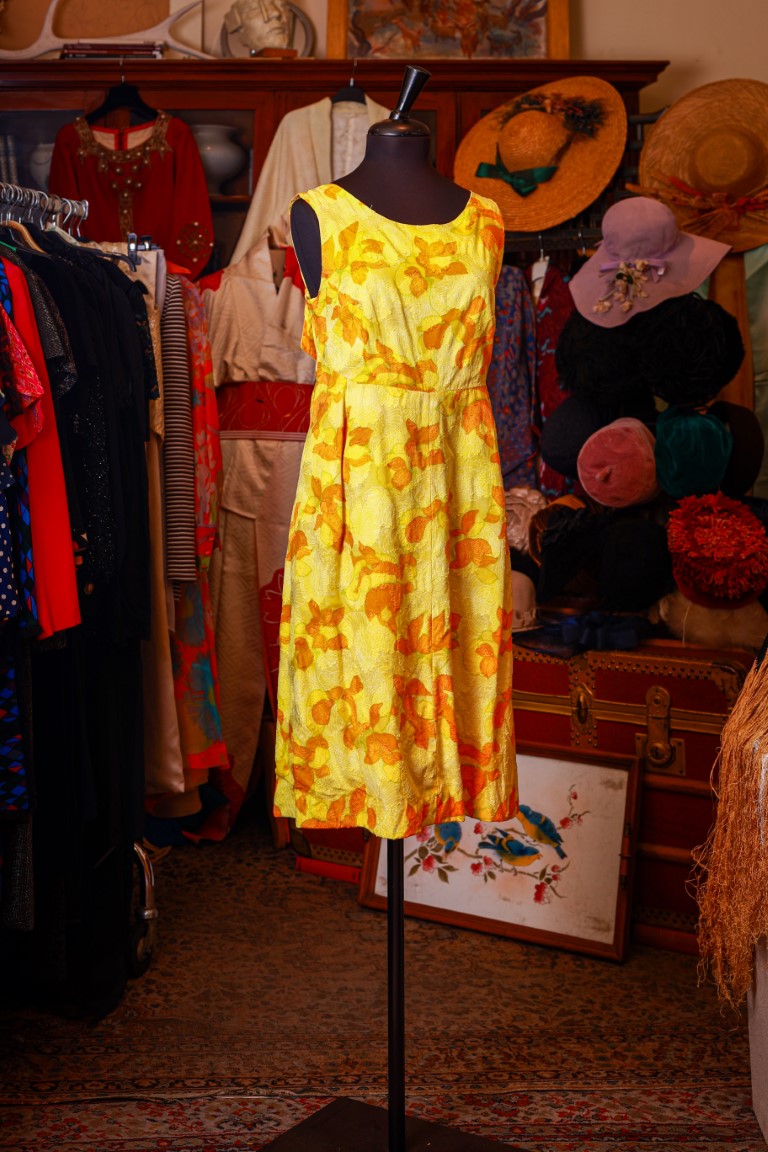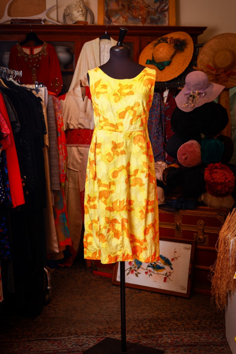 Composto da un abito in jersey floraele nei toni del giallo su fondo bianco e l'altro in cotone a stampa floreale nei toni del giallo e arancione