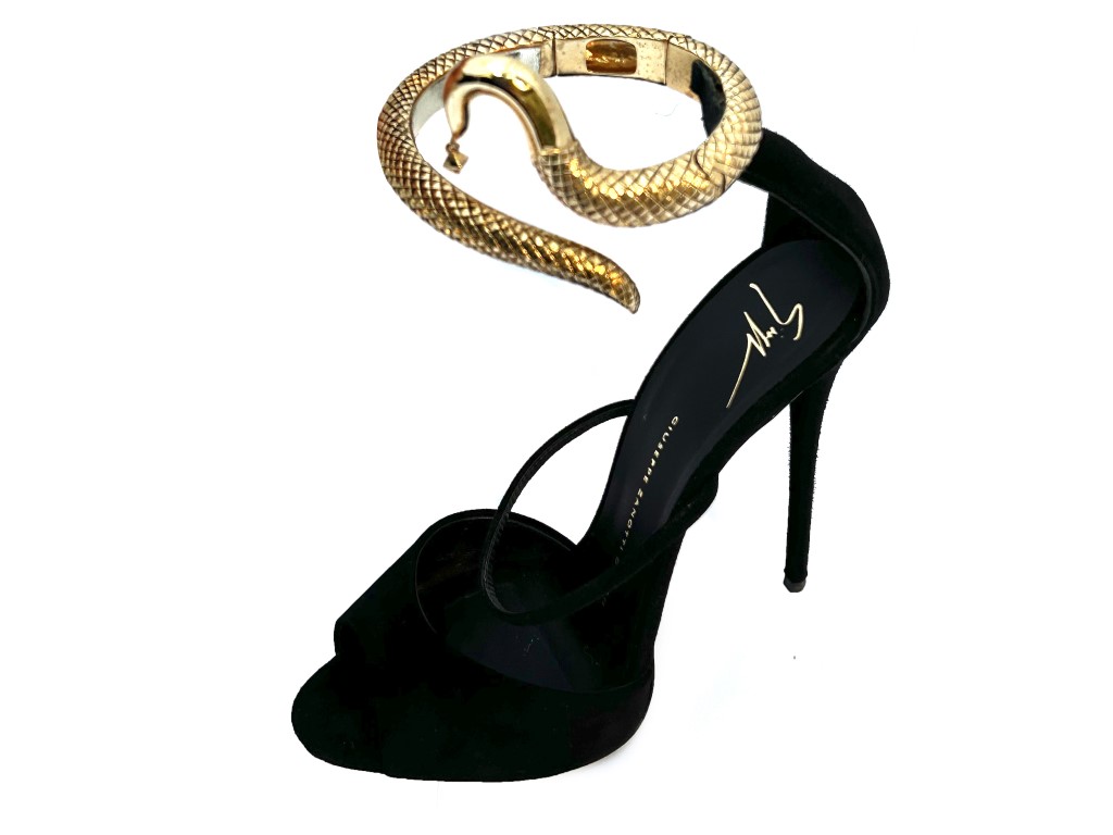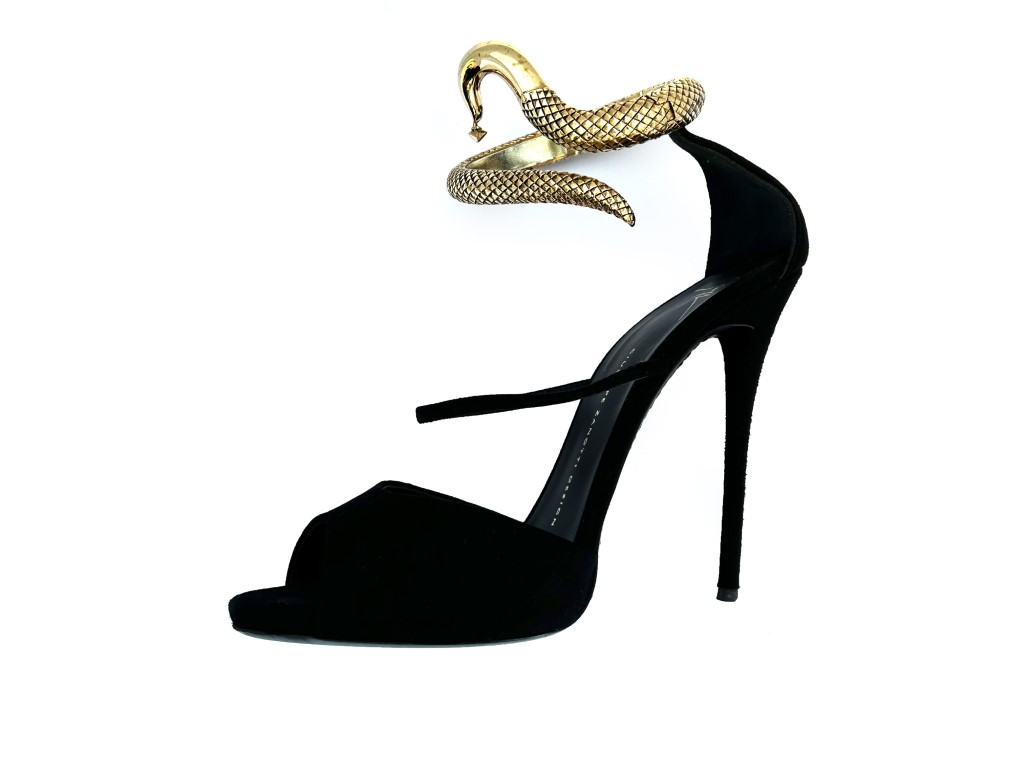 Giuseppe Zanotti, Sandalo gioiello in camoscio nero