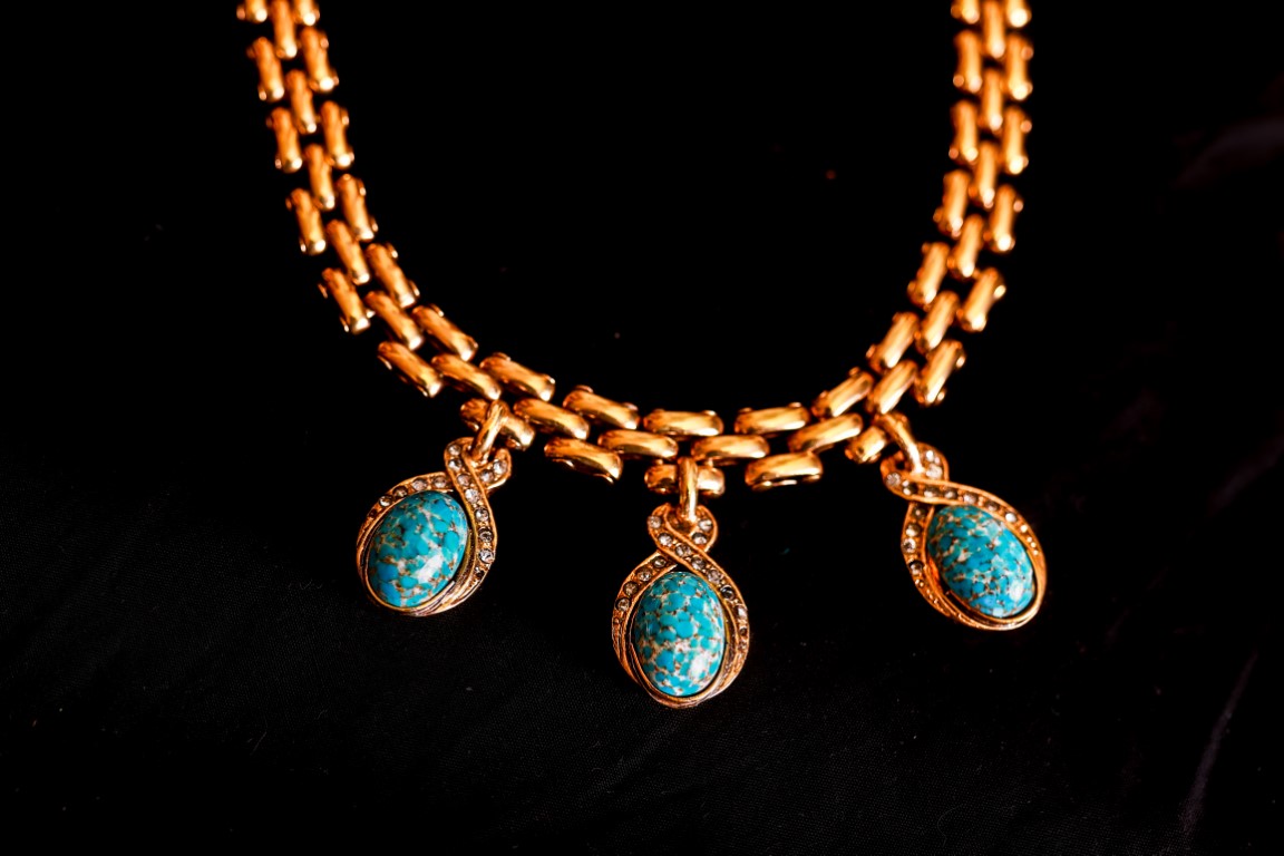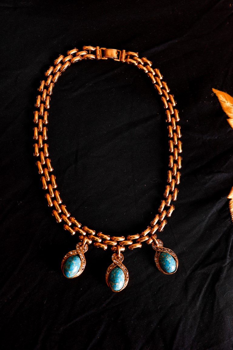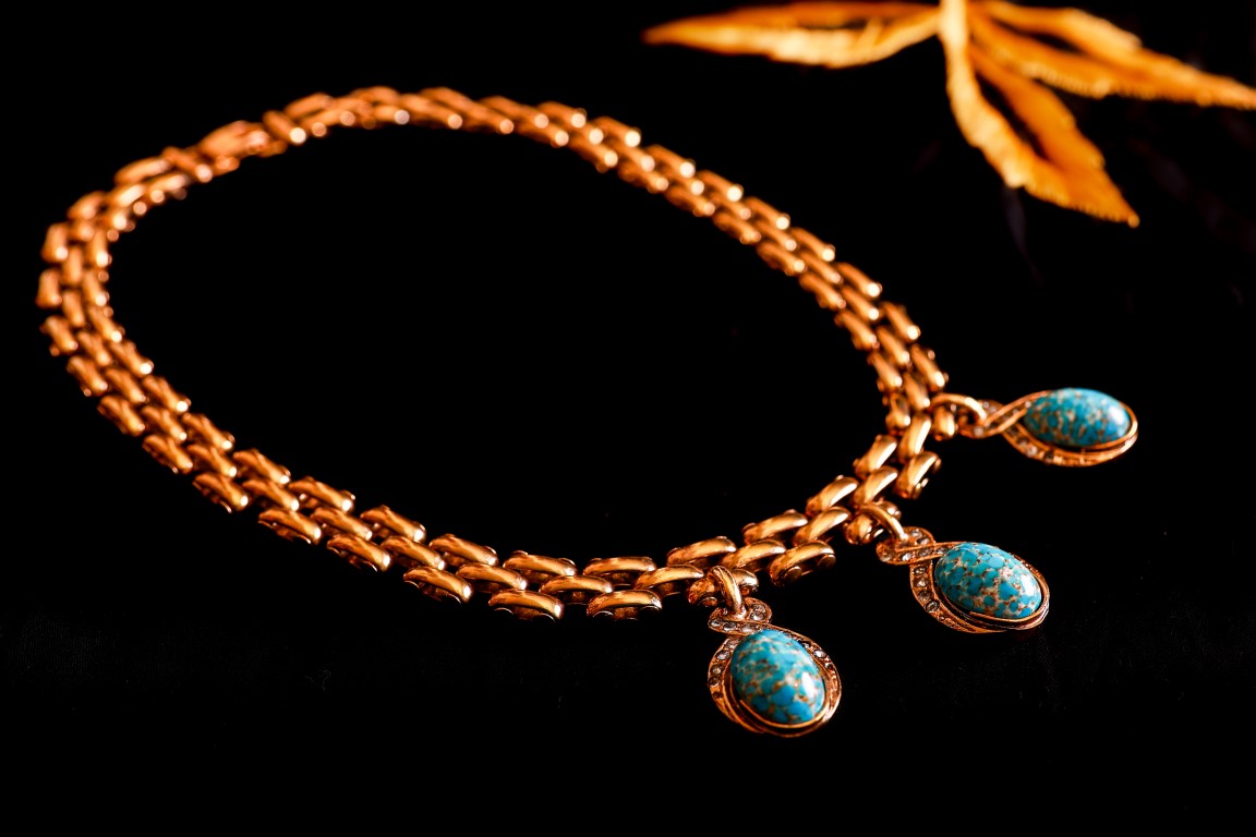 Cascio, Collana catena piatta con cabochon turchesi