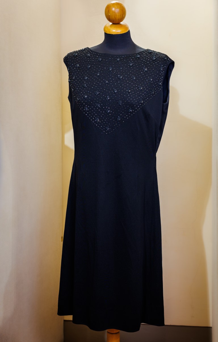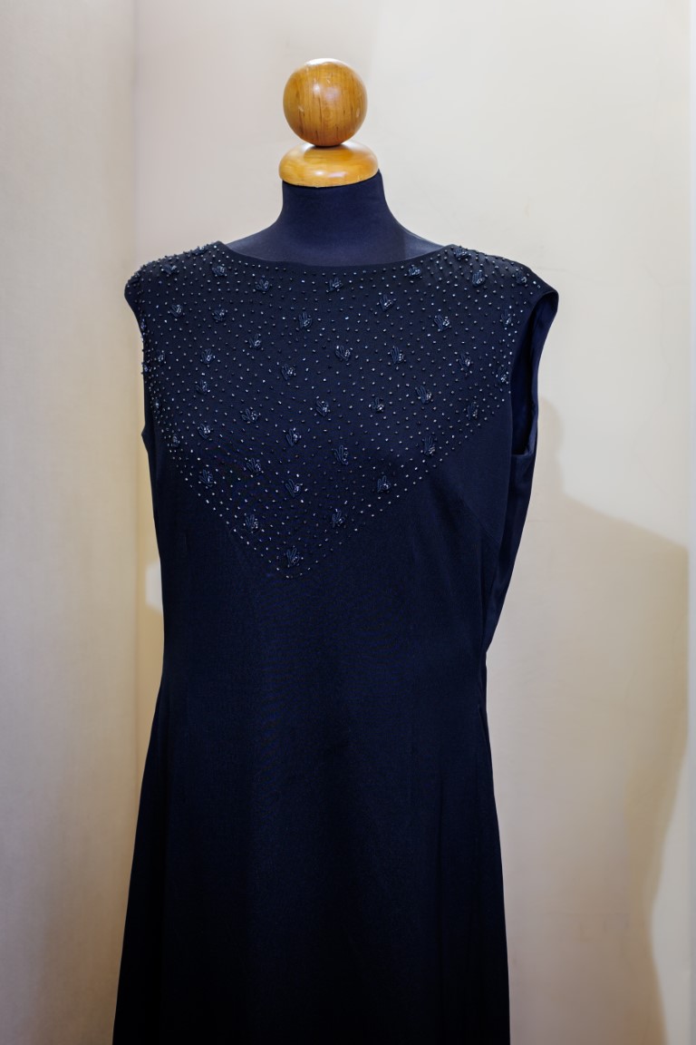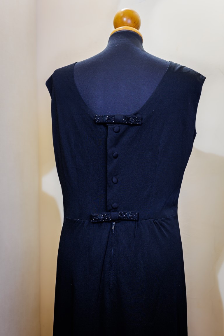 corpetto ornato da perline, ampio scollo sul retro con fiocchetti ad ornamento