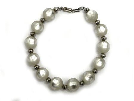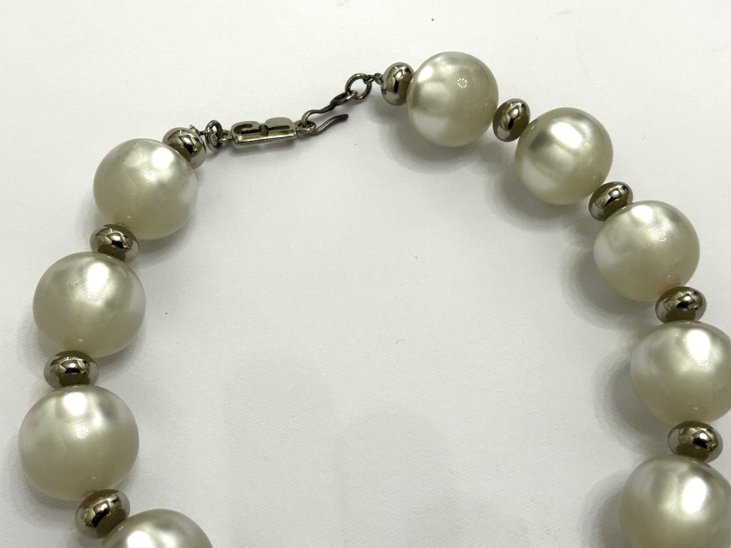 Fiaschi, Collana bijoux in metallo dorato, strass e perle simulate