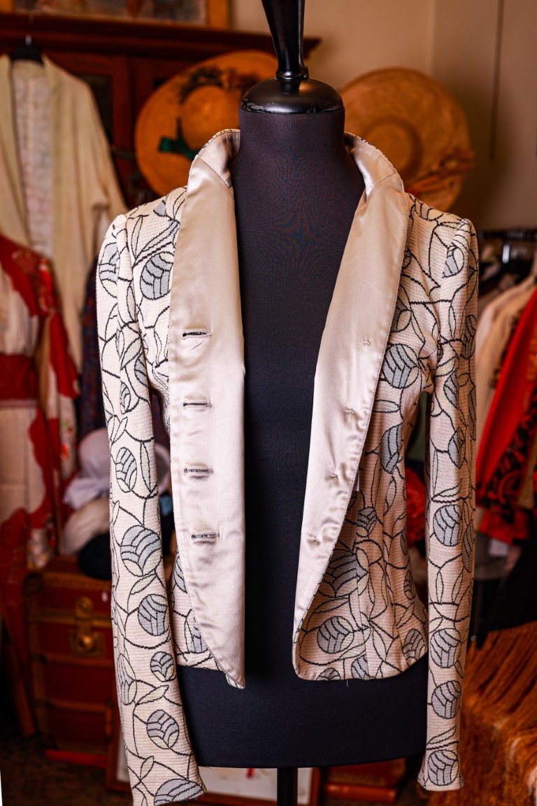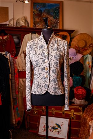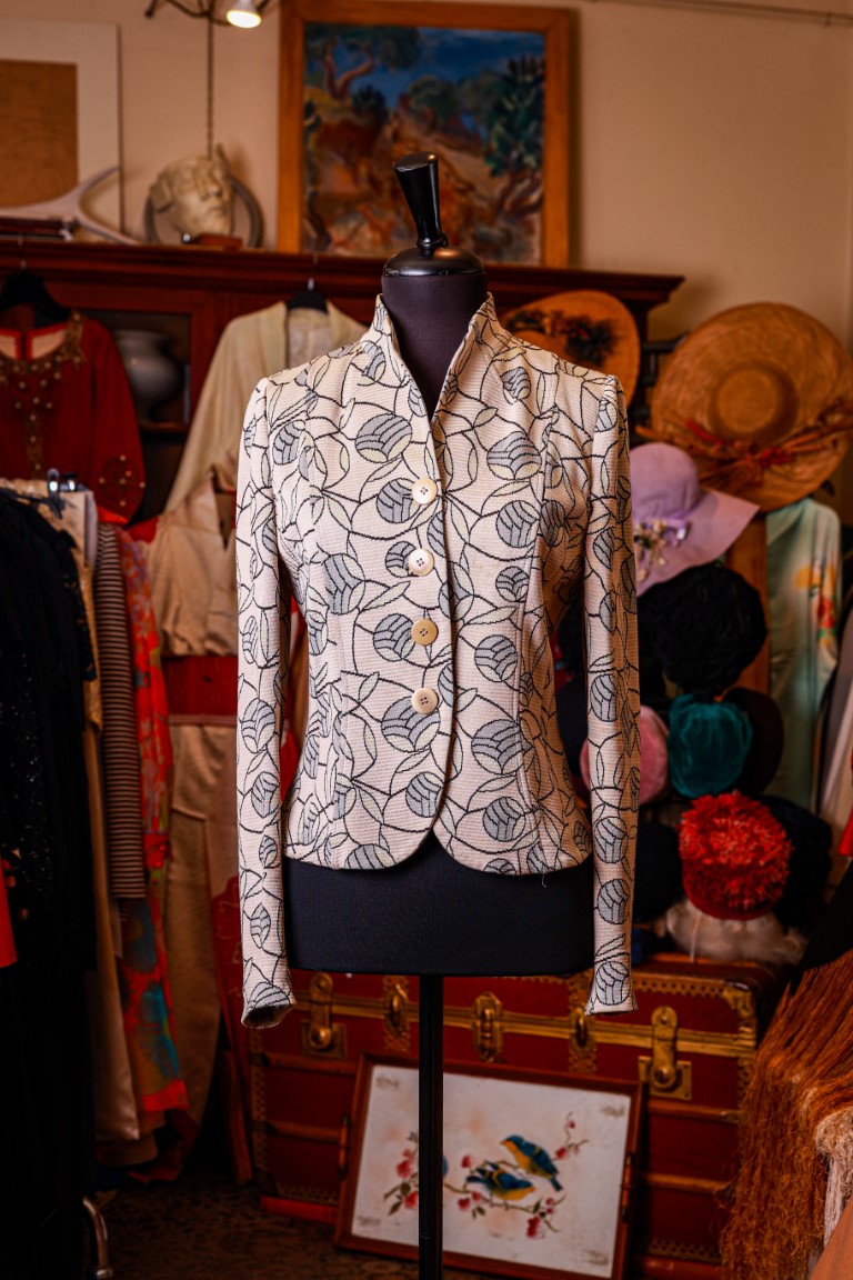Giorgio Armani, Giacca in lana beige a fiori blu