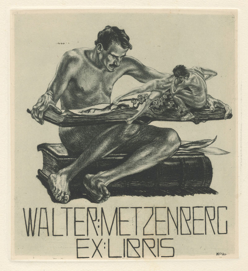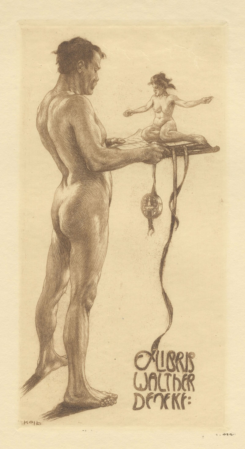 Alois Kolb (1875-1942). Cinque ex libris. Ex libris Elisabeth Leuschner. 1910. Acquaforte e acquatinta. mm 188x147. Foglio: mm 300x200. Firmata sulla lastra in basso al centro. Ex libris Walter Metzenberg. 1910. Acquaforte e acquatinta. mm 166x152. Foglio: mm 218x204. Firmata sulla lastra in basso a destra. Ex libris Oskar Leuschner. 1910. Acquaforte e acquatinta. mm 180x115. Foglio: mm 218x140. Firmata sulla lastra in basso al centro. Ex libris Walther Deneke. 1910. Acquaforte e acquatinta. mm 185x95. Foglio: mm 282x217. Firmata sulla lastra in basso a sinistra. Ex libris Vicente Bosch. Acquaforte. mm 178x118. Foglio: mm 248x160. Il nudo negli ex libris del primo '900, 76. Foglio 1: Bella impressione in verde stampata su carta velina applicata. Ampi margini, ottima conservazione. Foglio 2: Bella impressione in verde stampata su carta velina applicata. Ampi margini, ottima conservazione. Foglio 3: Bella impressione in seppia stampata su seta parzialmente applicata a cartoncino, ottima conservazione. Foglio 4: Bella impressione in seppia stampata su carta Japon. Ampi margini, ottima conservazione. Foglio 5: Bella impressione stampata su carta Japon. Ampi margini, ottima conservazione.
