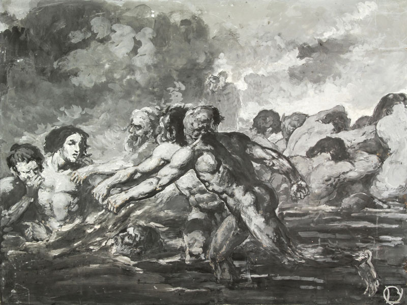 Vincenzo La Bella (1872-1954). Illustrazione per il canto VII dell’Inferno (Gli iracondi). 1900/01. Tecnica mista su cartone. mm 500x655. Siglata in basso a destra con le iniziali entro cerchio. Rara illustrazione originale di grandi dimensioni pubblicata in Dante Alighieri, La Divina Commedia novamente illustrata da artisti italiani, a cura di Vittorio Alinari, vol. I Inferno, Firenze, Alinari, 1902, p. 27, eseguita per il famoso concorso bandito nel 1900 dall'editore fiorentino. I disegni inviati da trentuno artisti di tutta Italia come saggi illustrativi di almeno due canti dell'Inferno furono esposti nel 1901 nei locali della Società fiorentina di Belle Arti. Il volume completo uscì nel 1902 e fu presentato l'anno stesso alla I Esposizione internazionale di arte decorativa moderna di Torino. La Bella fornì illustrazioni per i canti VI-IX e XXXII. Sempre nel 1902 l'artista napoletano partecipò alla I Esposizione internazionale di "Bianco e Nero" della Società amatori e cultori di belle arti di Roma, con le illustrazioni per l'VIII e il IX canto dell'Inferno. Nel 1903 furono pubblicati anche il Purgatorio e il Paradiso e La Bella fu nuovamente tra gli artisti chiamati ad illustrarli. Nel 1905 Vittorio Pica contribuiva alla notorietà del giovane artista suo conterraneo dedicandogli un articolo su "Emporium". La maggior parte dei bozzetti originali pubblicati da Alinari sono tuttora proprietà Risaliti-Vaiani di Pistoia. Un altro nucleo è conservato al Gabinetto Disegni e Stampe degli Uffizi e pochi altri si contano presso collezioni private. Quattro illustrazioni di Vincenzo La Bella facevano parte dell'insieme di novanta disegni originali di piccolo formato in gran parte inediti, appartenuti a Vittorio Alinari e posti a corredo di un volume della II edizione della Divina Commedia Alinari (1922-1923), di cui si ignorava l'esistenza fino al 2011 quando Gonnelli d'Aste Firenze lo ha catalogato e battuto come top lot.