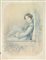 Alessandro Lanfredini (1826-1900). Fanciulla in azzurro. 1853. Acquerello e matita su cartoncino avorio. mm 415x320. Ottocento, 39.323. Firmato e datato a matita in basso a destra. Foglio ingiallito e con lieve foxing, qualche piccolo foro di tarlo, lievi abrasioni della carta, ma nel complesso bellissima opera.