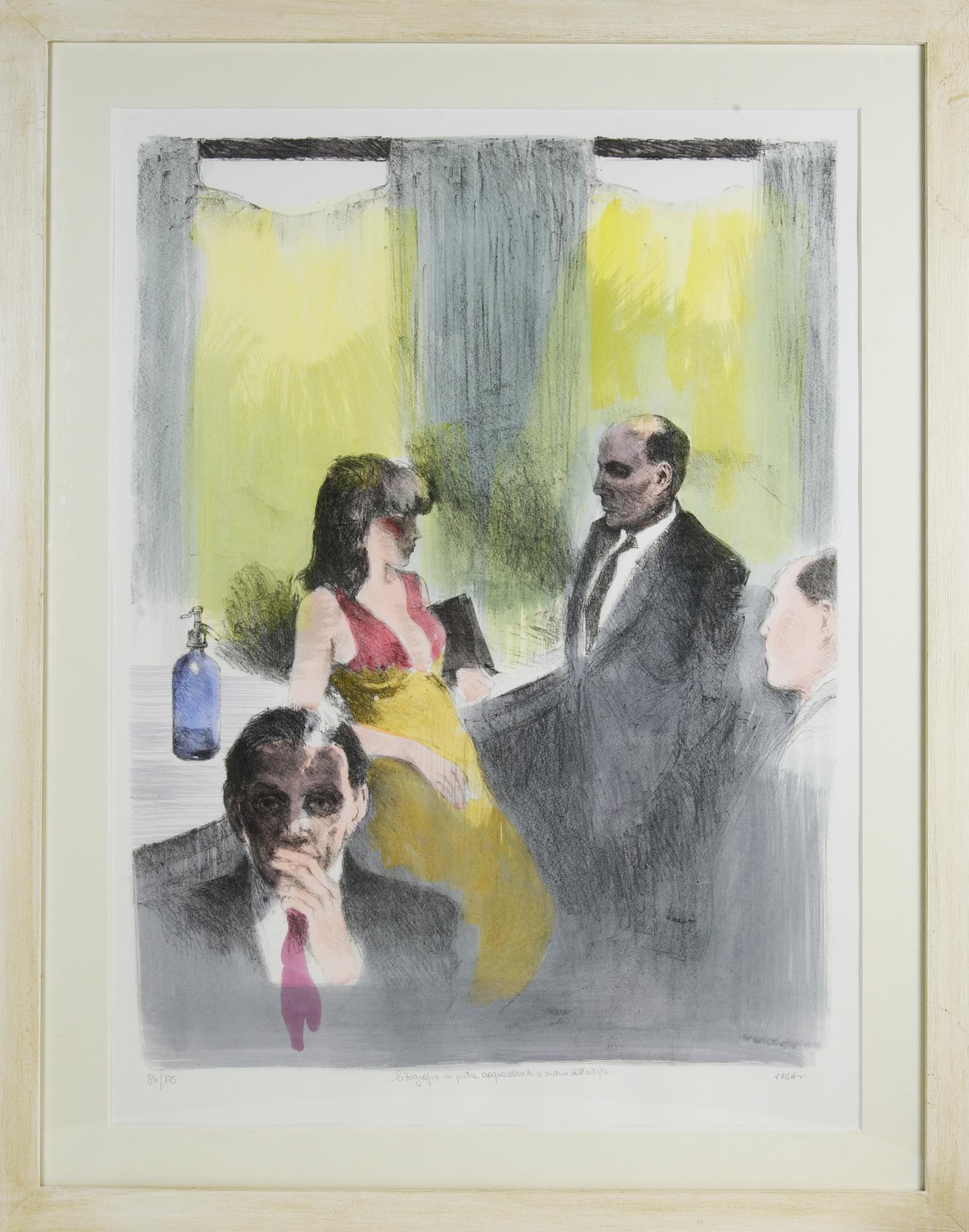 Alberto Sughi SENZA TITOLO litografia su pietra acquarellata a mano...