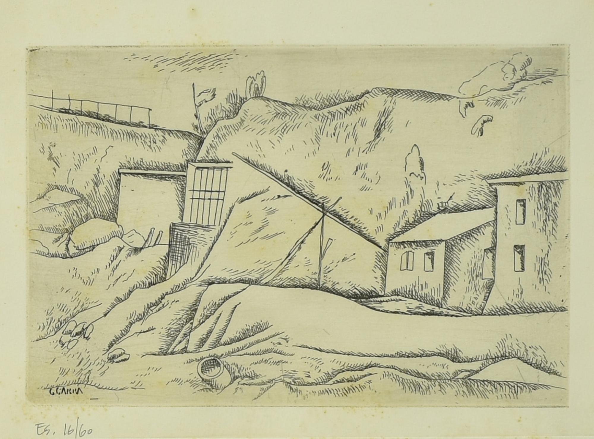 Lotto 111 | Carlo Carra' LA CASA DEL PESCATORE acquaforte su carta, battuta cm 14,8x22,...